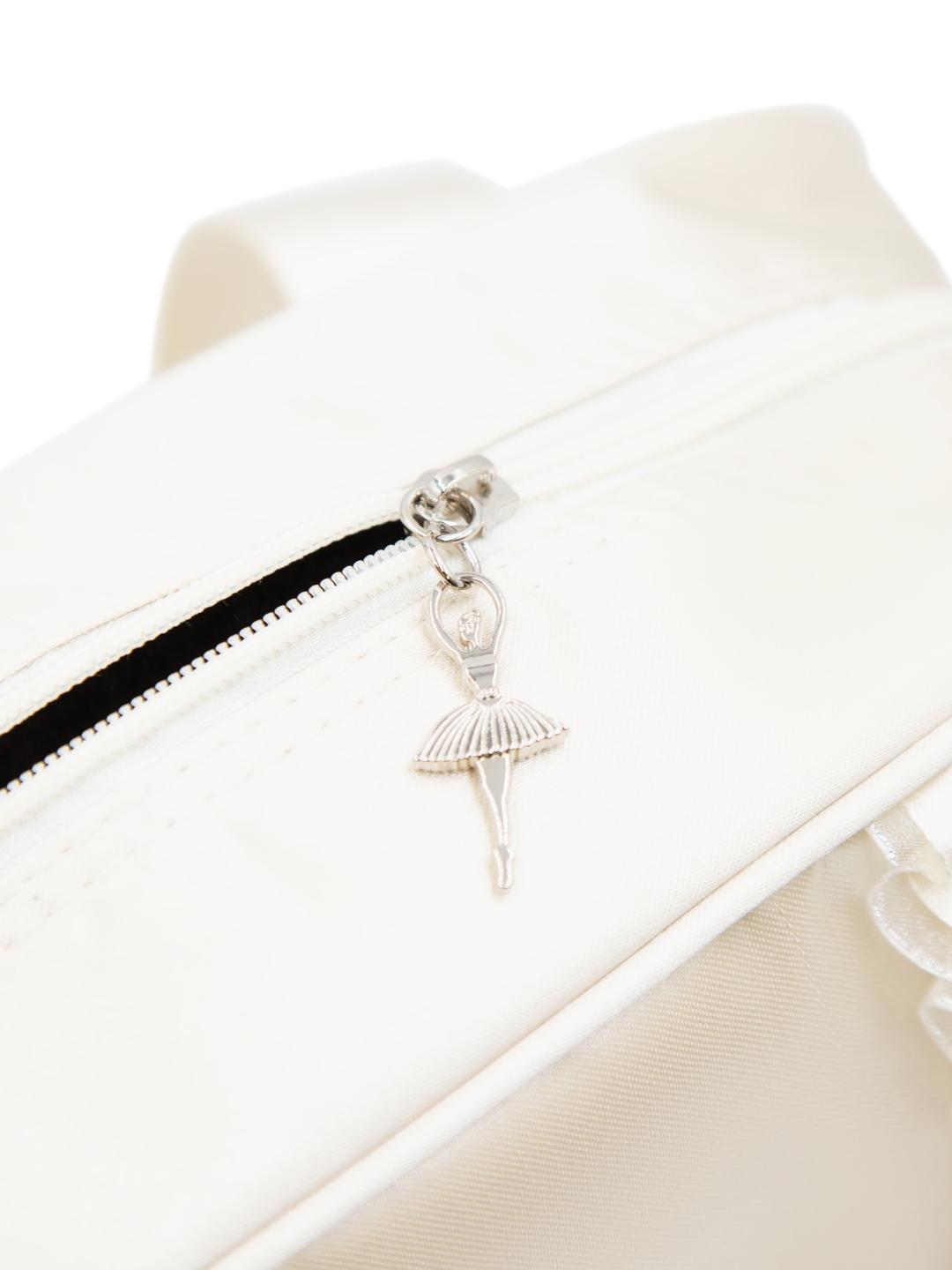 Wykonana z lekkiego poliestru, łączy w sobie funkcjonalność i uroczy design. Przód zdobi falbanka, a błyszczący, srebrny suwak z zawieszką w kształcie baleriny dodaje całości wyjątkowego charakteru.