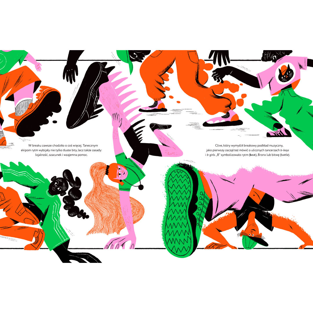 Wyraziste, pełne rytmu ilustracje duetu Agata Dudek i Małgorzata Nowak tworzą wraz z tekstem energetyczny i barwny wizualny spektakl.